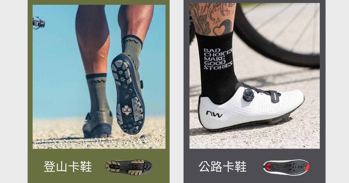 Northwave 單車知識庫登山卡鞋 vs 公路卡鞋|哪一種更適合你的公路騎乘 ?第一次接觸卡鞋時,許多車友都會先被一個問題卡住:「我要買哪一種卡鞋?」 登山卡鞋與公路卡鞋看似差不多,但停車時能否走路、上坡時是否穩定、踩踏回饋是否明確,實際上差異非常明顯。這篇文章以最生活化的方式,帶你理解兩種卡鞋在公路騎乘上的真實差別。這篇文章將從「卡鞋的使用情境」出發,再延伸到背後的系統差異,帶你一次理解 SPD(登山卡鞋)與 SPD-SL(公路卡鞋)究竟不同在哪裡。一、為什麼新手要從「卡鞋」而不是「卡踏」開始判斷?對多數騎車者來說,卡鞋是每天穿在腳上的器材;卡踏只是與之搭配的連結方式。實際上,新手的體驗差異 90% 都來自「鞋底」本身:鞋底是軟還是硬?能不能走路?停車時會不會緊張?踩踏時穩不穩?因此最直覺的切入方式是:先選鞋款(登山卡鞋或公路卡鞋) → 再決定搭配的卡踏系統。SPD 與 SPD-SL 都是一套鞋底+卡座+卡踏的完整系統,而理解鞋底的差異,是新手做出好選擇的關鍵。二、登山卡鞋(SPD)與公路卡鞋(SPD-SL)最直覺的差別以下是以「鞋」為主角的差異說明,讓你不需要理解機構,就能快速掌握兩者定位。1. 走路能力:SPD 明顯更友善登山卡鞋鞋底較厚、較有紋路,卡座藏在鞋底凹槽內,因此:走路不會滑上下車自然、不緊張適合通勤、停車多的路線公路卡鞋則以踩踏效率為主,鞋底硬度高、接觸面大,更適合完整踩踏的情境。2. 力量傳遞:SPD-SL 更直接、穩定公路卡鞋的鞋底幾乎不彎曲,從腳掌到踏板的力道損失極小。高速巡航更省力長距離踩踏更穩定節奏穩定的公路騎乘更划算SPD 的鞋底較「有彈性」,力量不如 SPD-SL 那麼直接,但對新手更舒適。3. 上下車難度:SPD 容錯率更高SPD 的入卡與出卡力道較輕,新手比較容易習慣,也能快速建立信心。SPD-SL 出卡角度固定,對完全沒有卡鞋經驗的人來說,適應期較長。三、登山卡鞋(SPD)適合誰?如果你符合以下三項中的任一項,從 SPD 開始會比較舒服:騎乘路線有停車、紅燈、上下車需求剛接觸卡鞋,對「卡不掉」有點緊張爬坡多、步行多、休息點多SPD 是所有卡鞋中「最友善的入門系統」。 你會感覺自己能控制車,而不是車在控制你。四、公路卡鞋(SPD-SL)適合誰?如果你的騎乘方式開始強調效率,SPD-SL 就會是下一步。長距離公路騎乘(70 km 以上)固定配速、穩定踩踏正在規律訓練、追求速度希望力量更直接傳到踏板SPD-SL 的鞋底硬度高、接觸面大,不適合走路,但一旦踩上踏板,力量回饋會非常清楚。五、新手最常見的三個問題(FAQ)1. 新手可以直接穿 SPD-SL 嗎?可以,但需要適應期。如果你多在都會騎車,或容易上下車,SPD 會更安全舒適。2. SPD 是不是越野專用?不是。SPD 的本質其實是「好走路的卡鞋系統」,對新手、公路新手都很適合。3. 要不要買兩種鞋?剛開始不需要。先從與你騎乘方式相符的那一雙開始即可。未來騎乘型態改變,再升級另一款也是自然的路徑。六、如果今天就要選:最簡單的建議90% 新手:先穿 SPD(登山卡鞋)穩定公路長距離:選 SPD-SL(公路卡鞋)怕摔、怕卡不掉:從 SPD 開始這不是性能問題,而是你現在的「使用情境」決定的。延伸閱讀單車鞋選用指南|從零開始認識卡鞋與公路鞋 登山卡鞋與公路卡鞋如何選擇|初學者快速決策版 SPD vs SPD-SL 技術解析|卡踏系統與踩踏效率比較 公路車鞋選用指南|入門、進階與競賽公路鞋差異