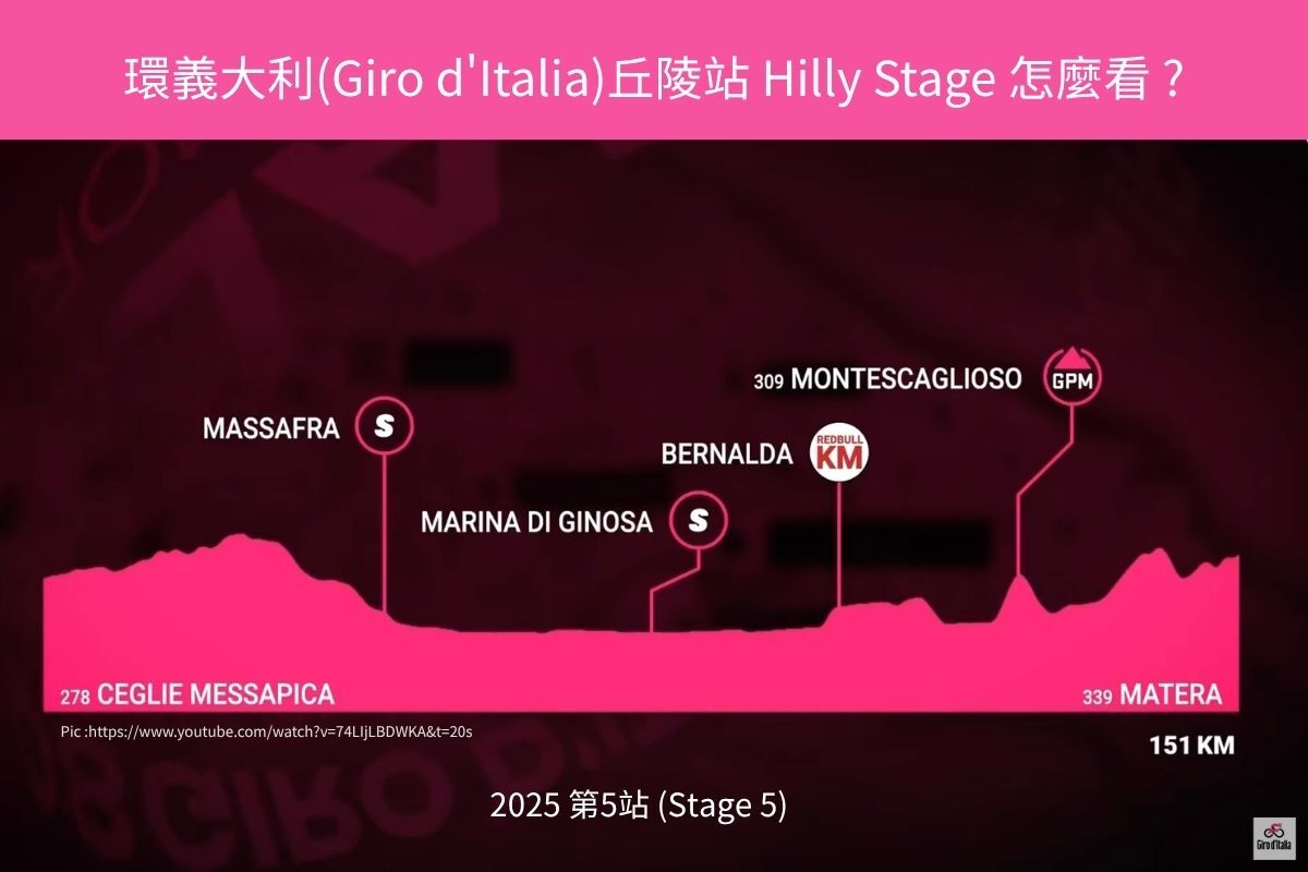 Northwave 單車知識庫|環義觀看指南|丘陵站看起來不難,卻最容易失序:從 Giro 2025 第 5 站看懂丘陵站如果平地站比的是位置,高山站比的是耐力,那麼丘陵站比的,往往是誰先失去節奏。與平地站的列車衝刺、高山站的總成績對決不同,丘陵站最迷人的地方,在於它很少把勝負寫在單一地形上。它沒有高山那樣明確的長坡壓力,也不像純平路那樣能讓主集團長時間穩定推進。真正決定比賽內容的,往往是一路反覆出現的短坡、彎道、節奏切換,以及選手在變化之中做出的選擇。以 Giro d’Italia 2025 第 5 站為例,這是一個很適合拿來理解丘陵站的樣本。路線前段看起來並不特別激烈,但真正的戲,往往不是一開始就寫在海拔圖上,而是在後段地形逐漸收緊之後,節奏開始被打開的那一刻。一、什麼是丘陵站?所謂丘陵站,通常指的是地形以連續起伏為主的賽段。它可能沒有長距離高山爬坡,卻也不是讓衝刺列車一路精準控場的純平路。短坡、彎道與節奏變化交錯,使這類賽段很難用單一節奏騎完。這種地形最容易被低估。因為單看路線剖面,常常不覺得哪一段特別誇張;但當比賽進入後段,反覆的起伏會逐漸把選手的節奏切碎。你很少有機會長時間待在一種穩定輸出裡,而必須不斷在加速、恢復、再加速之間切換。也因此,丘陵站真正的難,不在高度,而在你很少能用同一種狀態騎到終點。二、丘陵站怎麼看?平地站的速度,在丘陵站不一定成立在平地站,很多時候你可以很清楚地看見主集團如何控場:誰在前方承受風阻、哪一支車隊在安排衝刺列車、什麼時候開始把速度拉起來。丘陵站則不同。短坡與彎道會讓節奏一直被打斷,原本看似能追回的時間差,可能因為地形轉換而被重新拉開。你要看的,不只是誰最強,而是誰最適應變化丘陵站最值得看的地方,不一定是某一位選手的絕對能力,而是誰能在變化中維持秩序。誰在短坡後還能跟住前方節奏,誰在彎道後還能把速度接回來,哪一支車隊願意長時間控場,又是哪一個突圍者抓對了時機,這些細節加總起來,才是丘陵站真正的觀戰樂趣。三、誰會在丘陵站發揮?丘陵站最適合的,往往不是單一類型的車手,而是能在多種條件下保持競爭力的人。第一種是爆發型突圍者。他們不一定擁有最強的長距離爬坡能力,但能在最後一兩個短坡發動關鍵進攻,並把優勢一路維持到終點。第二種是全能型選手。這類車手既不完全依賴純衝刺,也不需要高山站那樣的長坡節奏,他們在起伏地形中更能發揮穩定性與判斷力。第三種則是熟悉 timing 的老將型機會主義者。丘陵站的勝負常常不是最強的人直接拿走,而是最會讀比賽的人在正確時刻出手。四、什麼時候最值得看?開賽初段:看突圍能不能被放行丘陵站常常會在開賽不久就形成前方小集團。這時候最值得看的,不只是哪些人出現在突圍名單裡,而是主集團的態度。如果總成績車隊選擇保守,或者主集團對追回沒有那麼堅決,前方突圍的成功率就會提高。中後段:看節奏什麼時候開始失去秩序丘陵站真正的價值,往往出現在中後段。當地形開始反覆起伏,原本看似穩定的主集團會慢慢出現裂縫。這時候如果你只看秒差,可能還不夠;更重要的是觀察隊形、位置與追擊效率,因為比賽有時不是被一座坡改變,而是被連續幾個地形細節慢慢拆開。最後階段:看短坡、彎道與終點設計如何改寫結果丘陵站的終點往往不會像純衝刺站那樣單純。最後幾公里若包含短坡、彎道或技術性進城路線,原本擅長平路衝刺的選手,未必還能保有相同優勢。這也是丘陵站最精彩的地方:你以為比賽快要收束,結果路線本身又把局勢重新打開。五、以 Giro 2025 第 5 站為例如果要選一個容易理解的丘陵站範例,Giro 2025 第 5 站很合適。從路線剖面來看,前段並不是那種一眼就讓人緊張的賽段;真正關鍵的地方,在於後段逐漸出現的起伏與收尾設計。這也是丘陵站最典型的迷惑性:它不會一開始就把難度擺在檯面上,但當你進入後段,節奏其實已經悄悄被改變。原本能穩定控制的主集團,會開始變得不那麼整齊;原本看起來還有機會追回的差距,也可能因為路線設計而失去效率。換句話說,這一站最值得看的,不只是最後誰先衝線,而是你能否看見比賽從穩定走向失序的過程。比賽影片|Giro d’Italia 2025 Stage 5 Highlights六、如果放到北台灣,最接近丘陵站的路線是什麼?如果想把丘陵站的感覺放回台灣,讓車友更有體感,北台灣其實有兩種很接近的騎乘場景。A. 巴拉卡公路上下陽明山 1–2 趟巴拉卡的特點,不只是爬坡,而是在反覆上下之後,節奏很容易被打亂。第一趟你可能還能靠新鮮度撐住,第二趟之後,真正困難的就不只是坡度,而是你能不能把節奏接回來。這和丘陵站很像:看起來沒有一座絕對大山,卻會在反覆起伏中逐步消耗你。B. 台二線陰陽海爬升至不厭亭 2–3 趟另一個更像丘陵站的場景,是從陰陽海往不厭亭反覆爬升。這段路的特徵不是單一長坡,而是路窄、彎急、短坡連續。第一次也許還能靠爆發力撐過去,但當你進入第二趟、第三趟之後,節奏開始失序的感覺會非常明顯。這也是為什麼北部車友對不厭亭特別有感。它不像武嶺那樣直接,也不像純平路那樣可預測;它的難,在於你永遠不知道,今天會在哪一段開始變慢。你可能想知道什麼是環義大利(Giro d’Italia)?環義大利是世界三大自由車大賽之一,通常在每年 5 月舉行,賽事長度